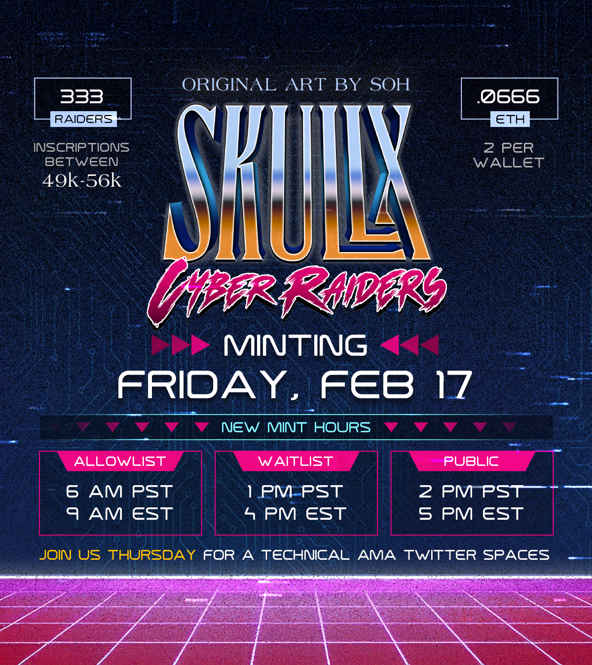 I was drawn to SkullX’s pixel artwork and loved the artist’s active presence. I reached out to their small three-person team and offered my assistance on a volunteer basis. I created a brand identity as well as the majority of their marketing material for multiple collection campaigns.